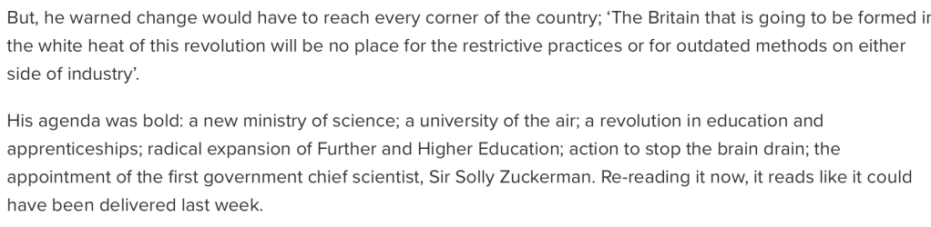 Most of all 60 years on it needs to stop having these “White heat of technology” Groundhog Day moments and just get on with it.